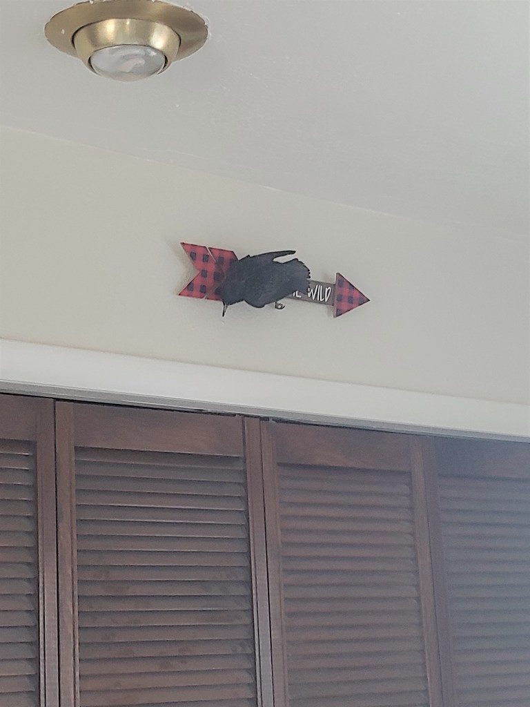 He got in to our house through the woodstove pipe, possibly under the mistaken impression that it would be a good place to nest. He bumped around inside the pipe for about 24 hours. Then, when I was sure he had died, my son opened the stove and out he came! He was so shocked by his experiences that I was able to pick him up in my hand and let him outside.