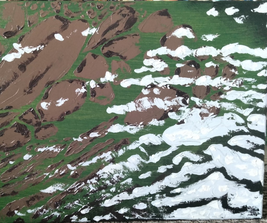 I have seen amazing, photorealistic paintings of pebbles under shallow water by professional Western artists. I’d love to return to that theme some day, when I have weeks or months to spend on it, and do a better job. Bucket list.