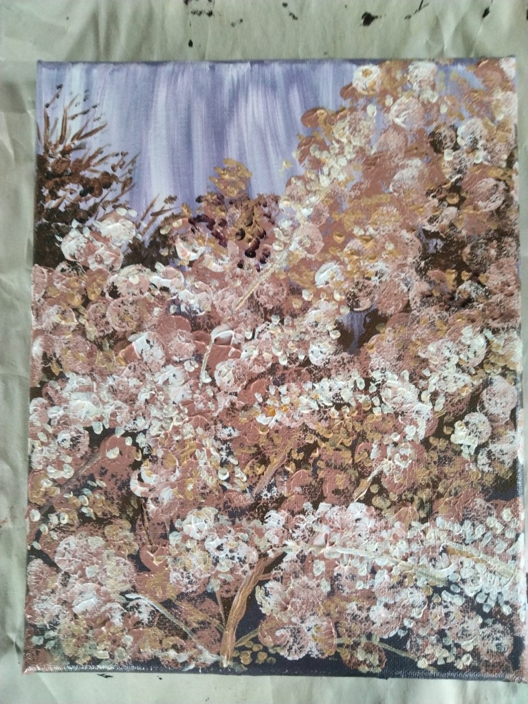 This is an 8×10 painting of a 5-foot weed near my school. It (the painting, not the weed) has already been claimed as a gift by a loved one.