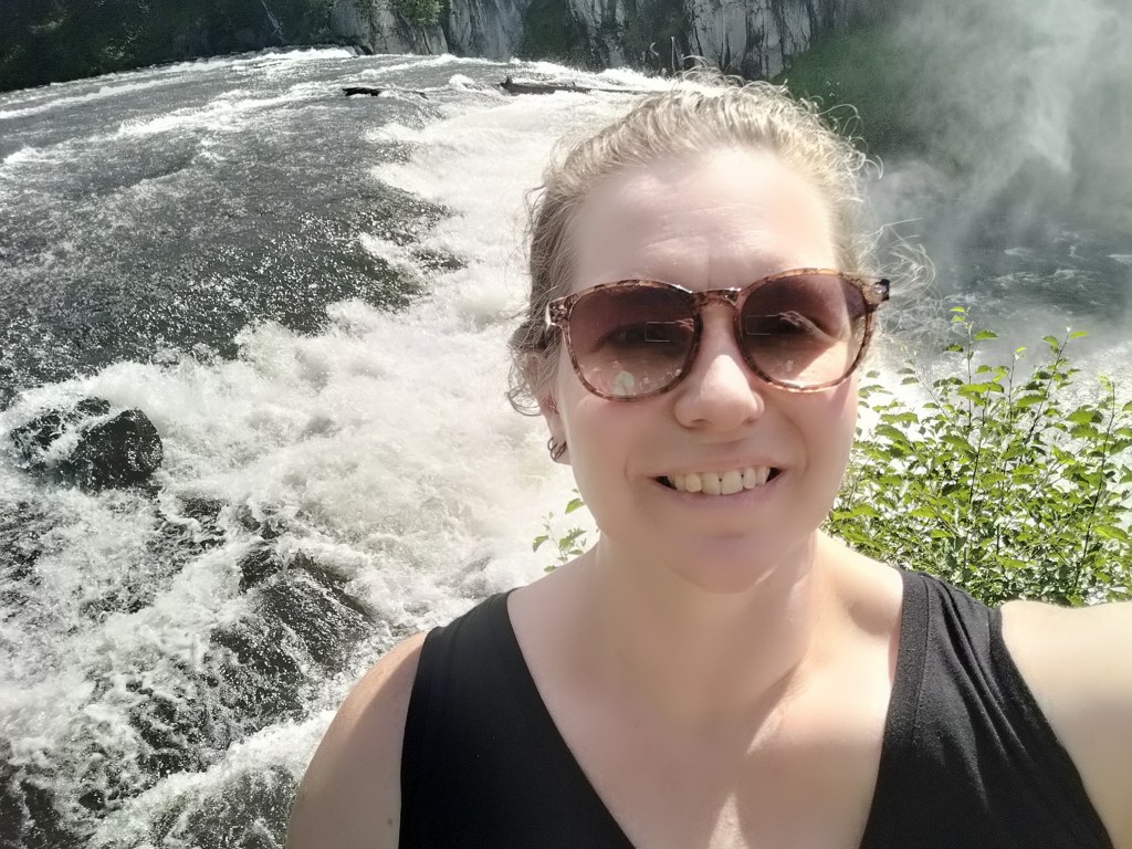The hike was not at all demanding. There’s a capacious parking lot ($5 entry, envelope system), and then a series of well-maintained steps and boardwalks that bring you down to the very top of the falls, with many specially designed niches for selfies.