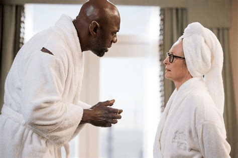 For those who are interested in my books, this movie has a similar sort of vibe in a few different ways. For one thing, it features an older woman having an affair with a large, impressive foreign man with whom she can’t at first communicate. (I’m always a sucker for scenes where people try to find a common language.) In fact, if Hollywood is paying attention, Idris Elba could do a fine job playing Nimri. (Tilda Swinton could not play Zillah. Sorry.)