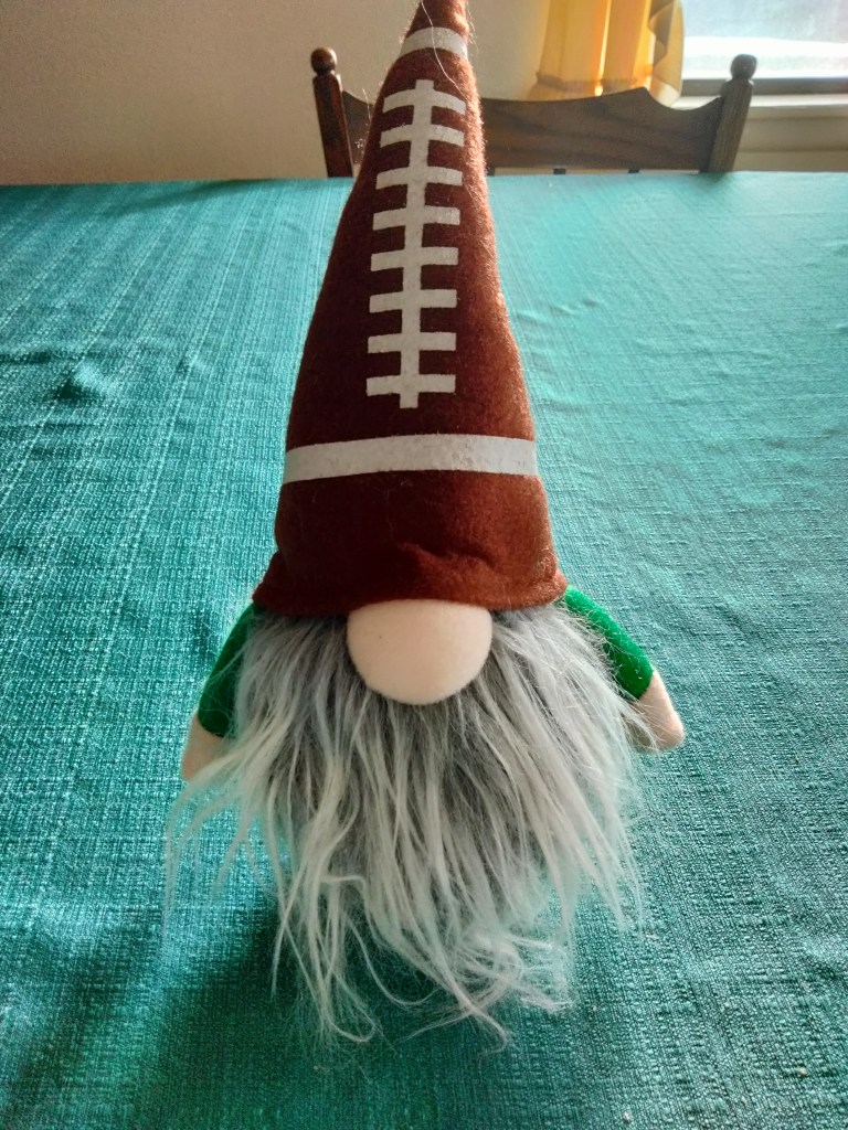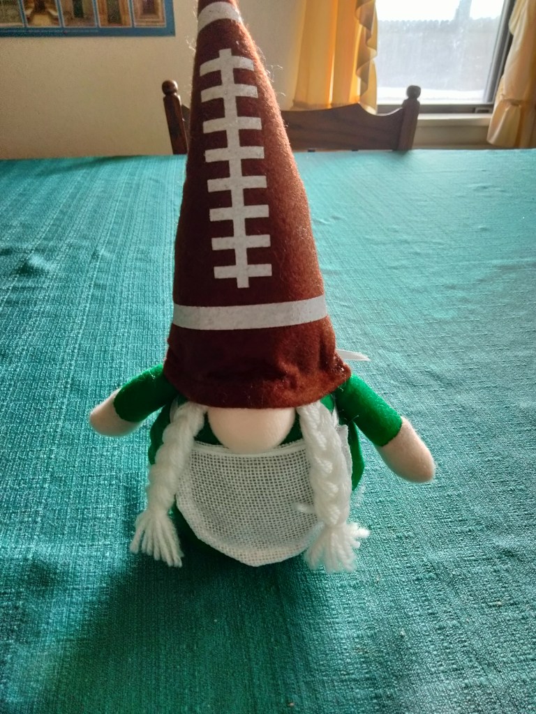 This isn’t a complete disaster. I like gnomes, and Mr. Mugrage and I are now football fans (though these gnomes are not wearing the colors of our sons’ team).