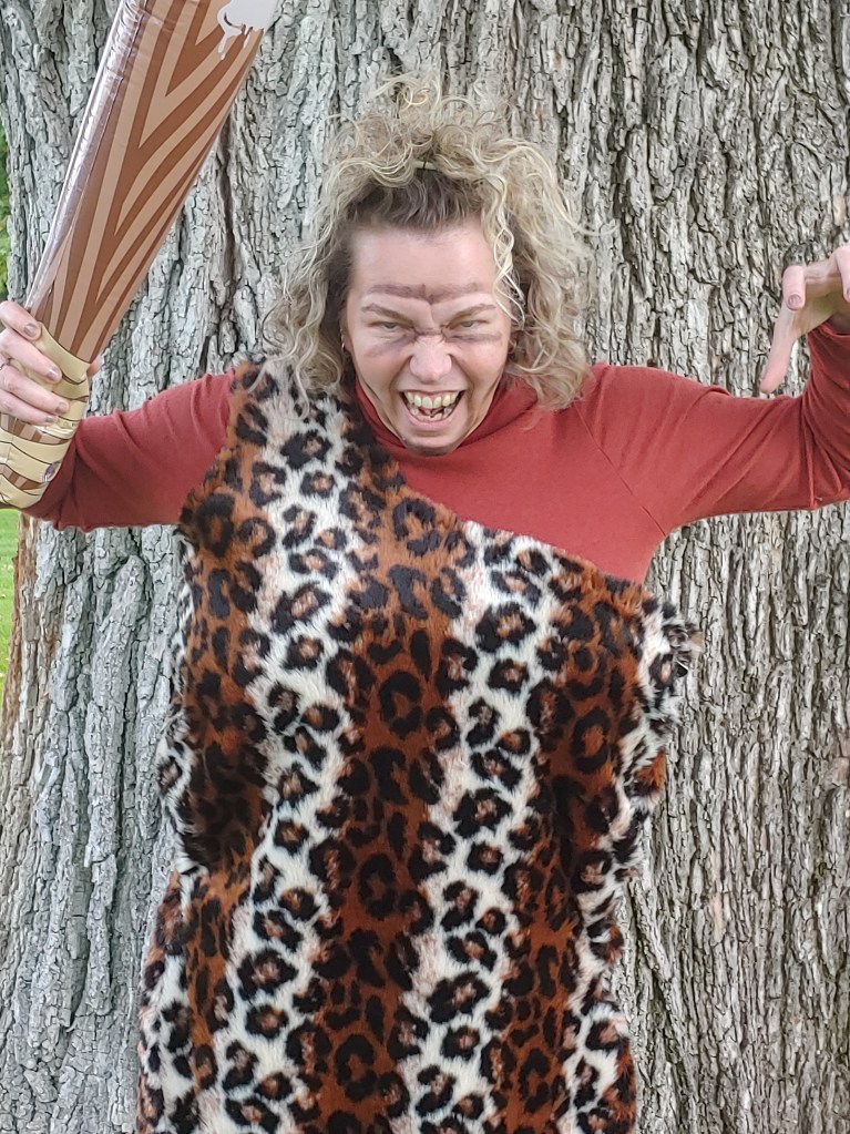 Faithful readers of this blog will object that, according to my own past posts, there is no reason to believe that Neanderthals carried clubs instead of more sophisticated weapons, or that they went around dressed in off-the-shoulder leopard skins. True. But a Halloween costume should be simple, iconic – a cartoon really – so that people can instantly recognize what you are supposed to be. So, I went with the off-the shoulder-leopard skin.