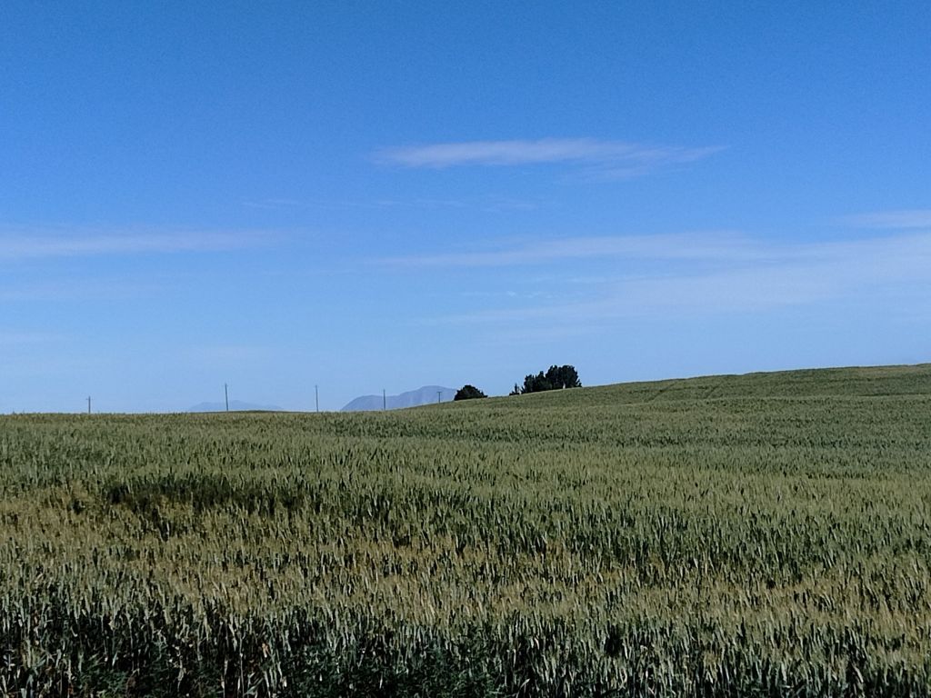 BSB is one of the biggest perks of living in the particular farmhouse where we do. Our house is perched on a rather high spot in the midst of relatively flat farms and desert. Looking north from our yard, you can see 30 miles to Big Southern Butte, and on clear days, to the Sawtooths beyond. It looks best around sunset, when it and the Twin Buttes to east of it are lit dramatically and often attract their own clouds. I have been trying to photograph it since we moved here, usually without much success, but in the picture of our downed tree above, you can see BSB in the distance. And here it is looming over the wheatfields:
