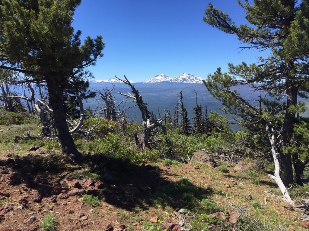 There is a trio of mountains in Oregon called the Three Sisters. In fact, the town of Sisters, OR, is named for them. In this picture, you can only see two of the them (the third is hiding behind).
